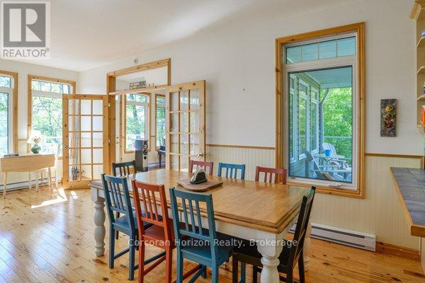 Welcome to your slice of Muskoka paradise- this turn-key, 3-bedroom cottage on Six Mile Lakes Hungry Island blends classic charm with modern comfort in an unforgettable, private setting. Nestled along 192 feet of pristine shoreline and bordered by Crown land, this secluded gem offers unmatched tranquility and space to unwind. With 2,000+sq.ft. of living space and an 875 sq.ft. wraparound deck half of it covered youll have ample room to entertain, relax, and soak in the lakefront beauty. Inside, the warm wood interior and cozy wood-burning stove create the ultimate cottage ambiance, while the large kitchen with a pantry makes hosting effortless. Each of the three spacious bedrooms offers comfortable accommodations. A new roof was installed in 2021. Even better, this fully winterized cottage supports four-season living, with access to snowmobile trails in every direction step outside and ride straight into the heart of winter adventure. Outdoors, gather around a large lakeside fire pit, cast a line from your private dock with deep water docking, and enjoy excellent fishing and countless water sports on Six Mile Lake. Whether its quiet mornings on the deck, summer boating, or snow-filled weekends exploring the trails, this private retreat delivers the true Muskoka lifestyle relaxation, recreation, and natural beauty all in one stunning package. (id:4069)