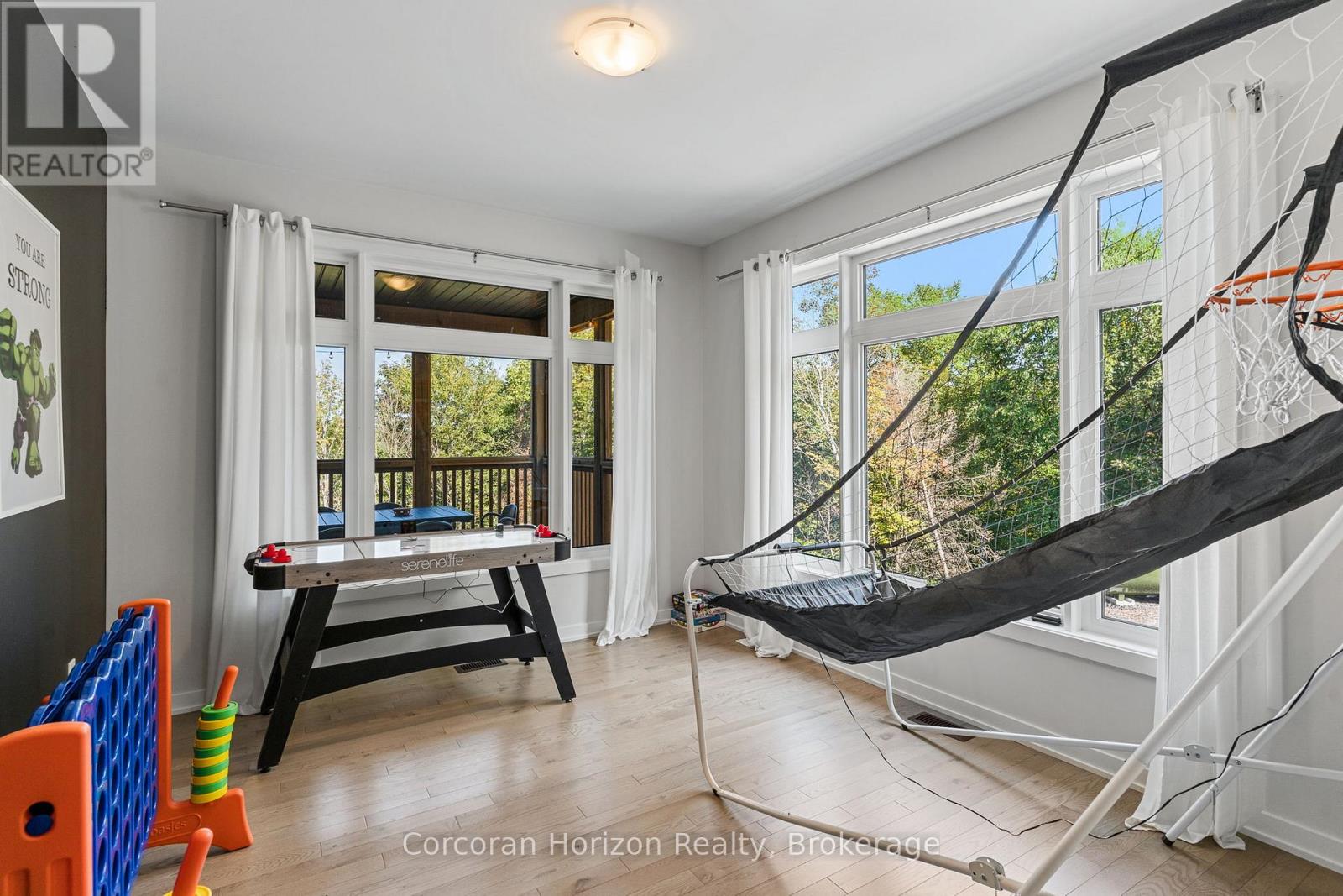 Your 2024 custom-built home in Lake of Bays, Muskoka, awaits. This truly stunning and luxurious property has the quality you desire in the location you've always wanted. The space flows eloquently, natural light pours in, and high-end finishes and furnishings, giving you a taste of luxury in the midst of beautiful, rugged forests, offering a rare, exceptional getaway that most people never expect to find in this part of Muskoka's landscape. Thoughtfully designed for all-season living, the home features soaring 18 ft ceilings, a dramatic wall of windows, four spacious bedrooms, including a main-floor primary suite with an ensuite, and a versatile office or rec room. Your new home could also be a revenue-generating asset. There is already a track record and operations in place for a fully licensed, turnkey short-term rental business, with bookings consistently rolling in. The choice is yours: continue the STR business as is, make this your new home in Muskoka or do both! This stunning 2,860 sq. ft. retreat at the end of a cul-de-sac sits on 2.3 acres and is a nature lover's paradise, backing onto an environmentally protected area with breathtaking panoramic water views that can be seen from every room in this home! A fully screened Muskoka room, an upgraded full-sized walk-out basement, and a waterside-view fire pit create perfect spaces for entertaining or relaxing year-round. Experience total privacy and relaxation with a new (2025) hot tub & barrel sauna. Your personal spa experience is ready and waiting. Surrounded by a vast network of trails and a short drive to Algonquin Park, Deerhurst Resort, Limberlost Forest, Arrowhead Park, and the vibrant town of Huntsville. With easy access to Highways 11 & 60, plus a Tarion New Home Warranty and future access to a clubhouse with an infinity pool and gym (completion Spring/Summer 2026), this is your chance to embrace luxury living in the heart of Muskoka's wilderness. (id:4069)
